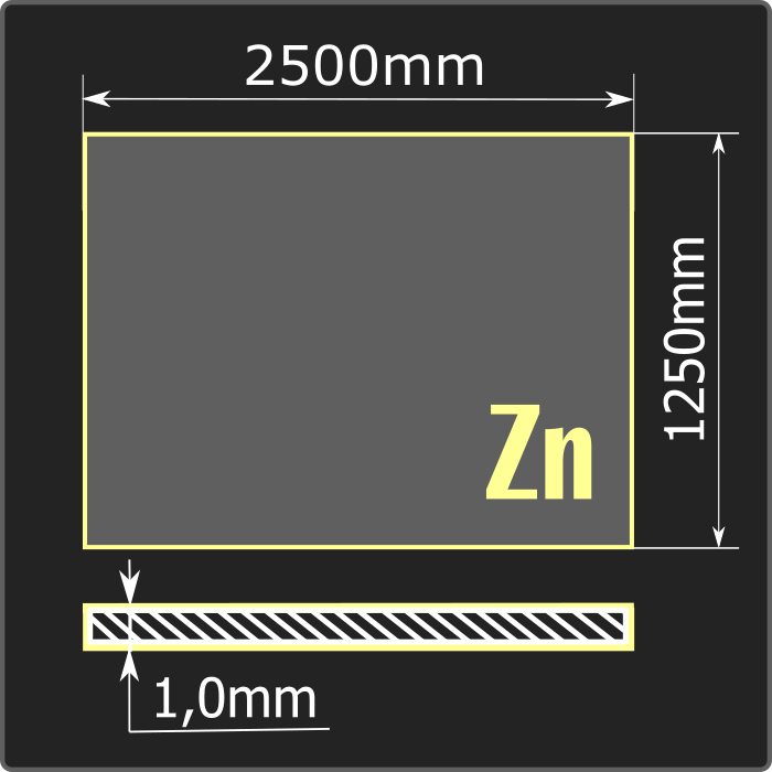 Лист стальной оцинкованный толщиной 1,0мм, шириной 1250мм и длиной 2500мм. Сталь 08пс. Соответствует требованиям ГОСТ 9045-93.