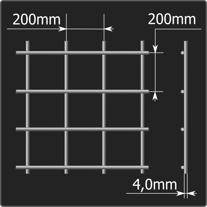 Сетка сварная с размером стороны ячейки 200*200мм из термический необработанной проволоки диаметром 4,0мм шириной карты 2,0м и длиной 3,0м. Соответствует требованиям ТУ 25.93.13-001-03876796-2019.