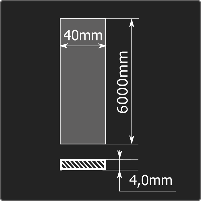 Полоса стальная горячекатаная толщиной 4,0мм, шириной 40мм и длиной 6м. Материал - углеродистая сталь. Соответствует требованиям ГОСТ 103-2006.