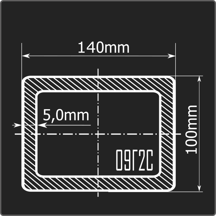 Труба профильная стальная прямоугольного сечения 140*100мм, длиной 12м и толщиной 5,0мм. Материал - низколегированная сталь. Соответствует требованиям ГОСТ 30245-2003. Стандартный пакет: вес - 4,212тн., количество - 20шт.