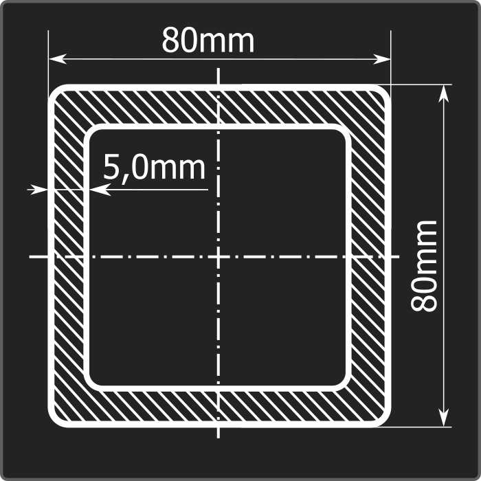 Труба профильная стальная квадратного сечения 80*80мм, длиной 12м и толщиной 5,0мм. Материал - углеродистая сталь. Соответствует требованиям ГОСТ 13663-86. Стандартный пакет: вес - 6,727тн., количество - 49шт.