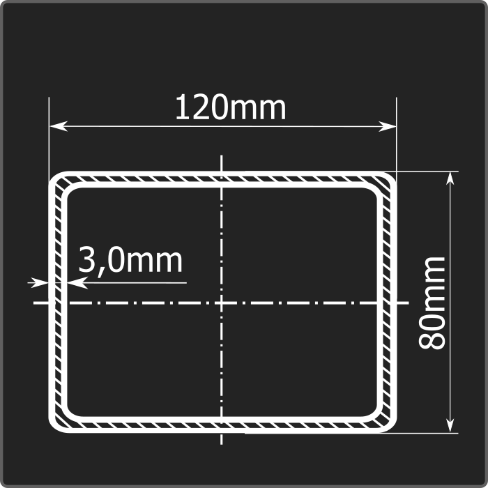 Труба профильная стальная прямоугольного сечения 120*80мм, длиной 12м и толщиной 3,0мм. Материал - углеродистая сталь. Соответствует требованиям ГОСТ 13663-86. Стандартный пакет: вес - 3,763тн., количество - 35шт.
